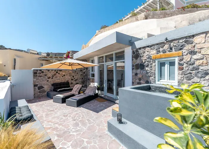 Die 6-Zimmer- Geminos Complex befindet sich in circa 25 Gehminuten Entfernung von Alt-Thera entfernt und bietet einen einen Jacuzzi. Die Villa verfügt über Parkplätze und eine Terrasse mit Aussicht aufs Meer.
